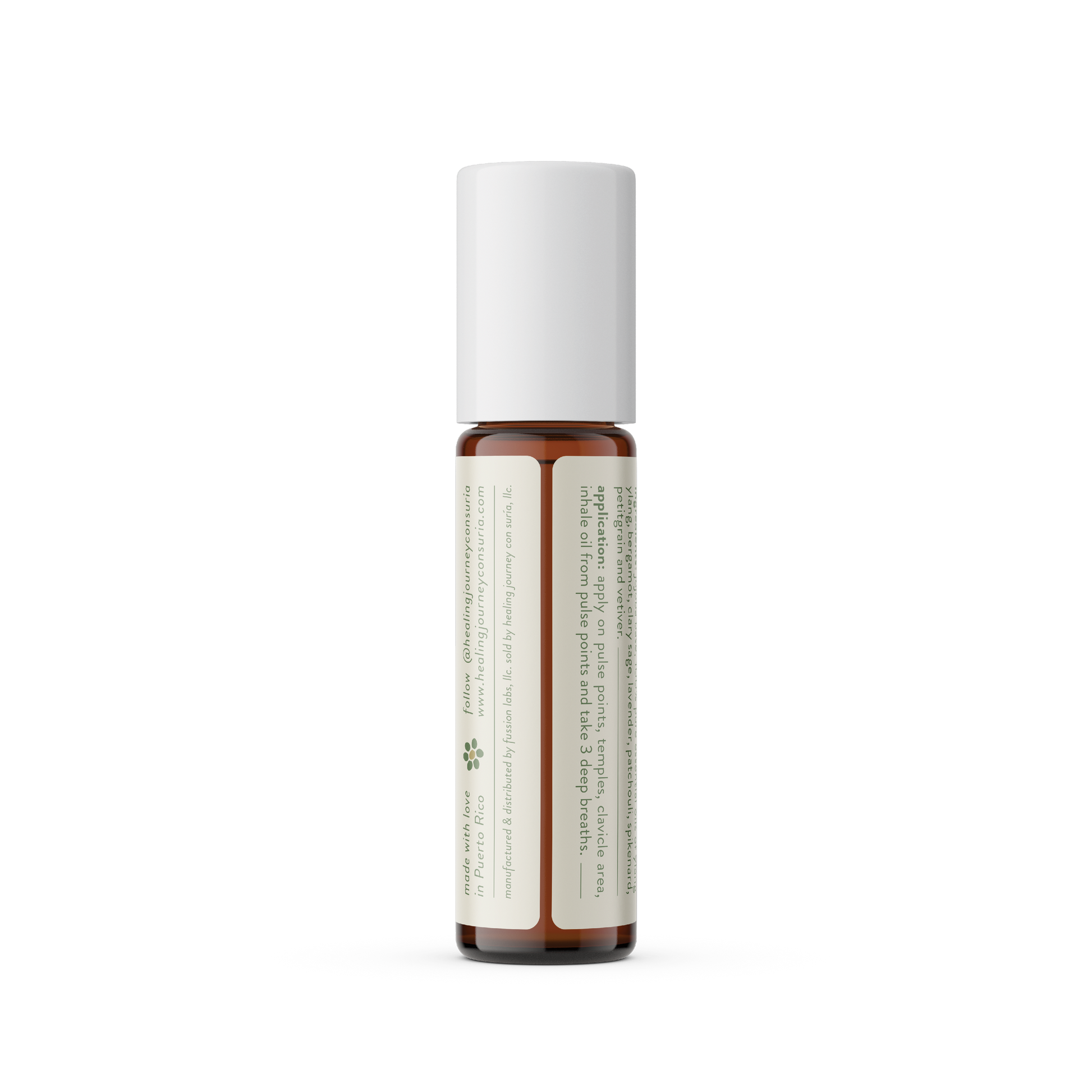 Ingredients: Jojoba base, 100% pure essentials oils of Ylang-Ylang, Bergamot, Clary Sage, Lavender, Patchouli, Spikenard, Petitgrain, and Vetiver.